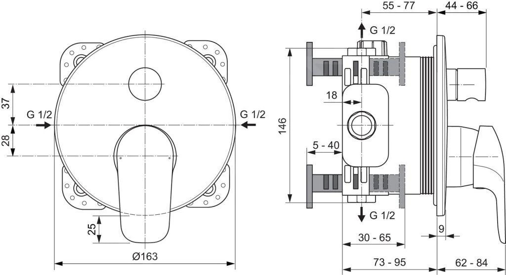 - afmetingen rozet Ø 163 mm