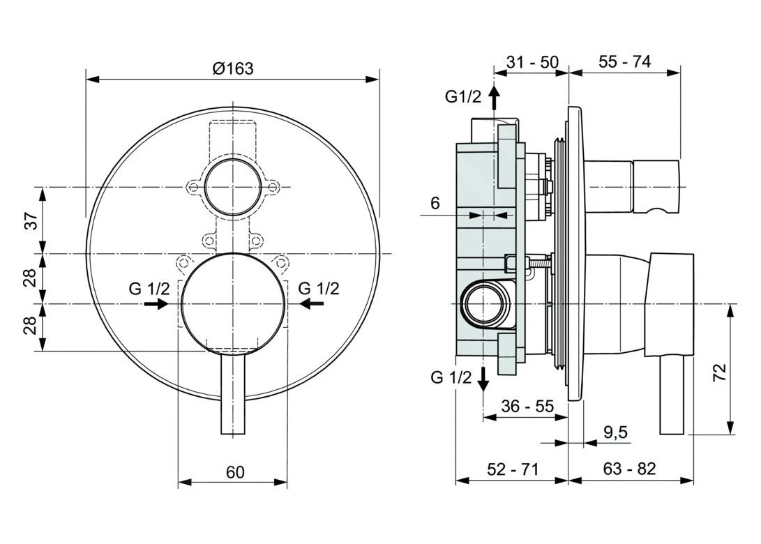 - CLICK technologie voor temperatuur- en doorstroombegrenzing door de hendel te draaien