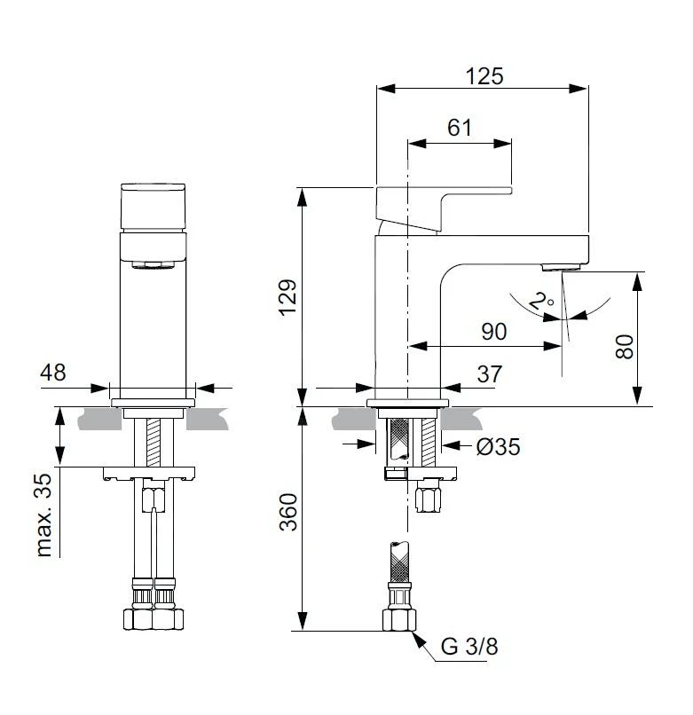 - hoogte van de kraan 129 mm