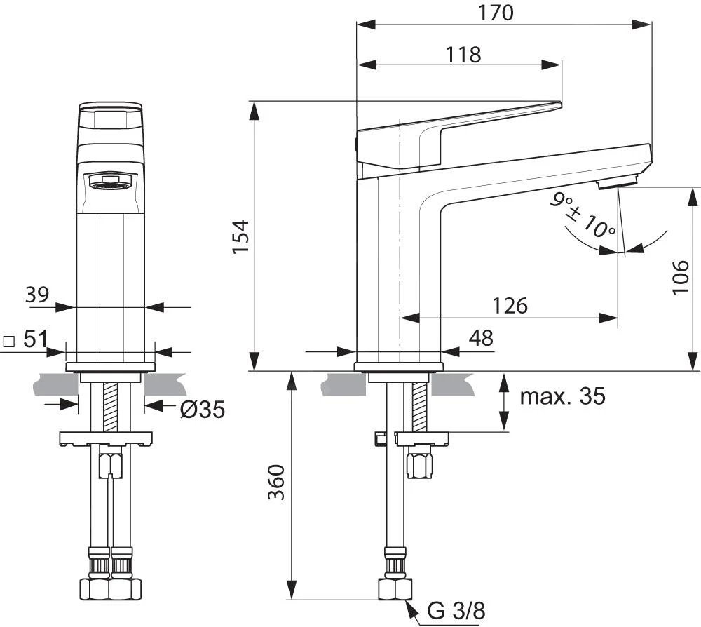 - instelbare straalrichting in een hoek van 9° +/- 10°