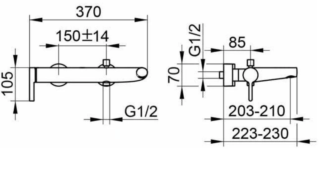 - lengte uitloop: 210 mm