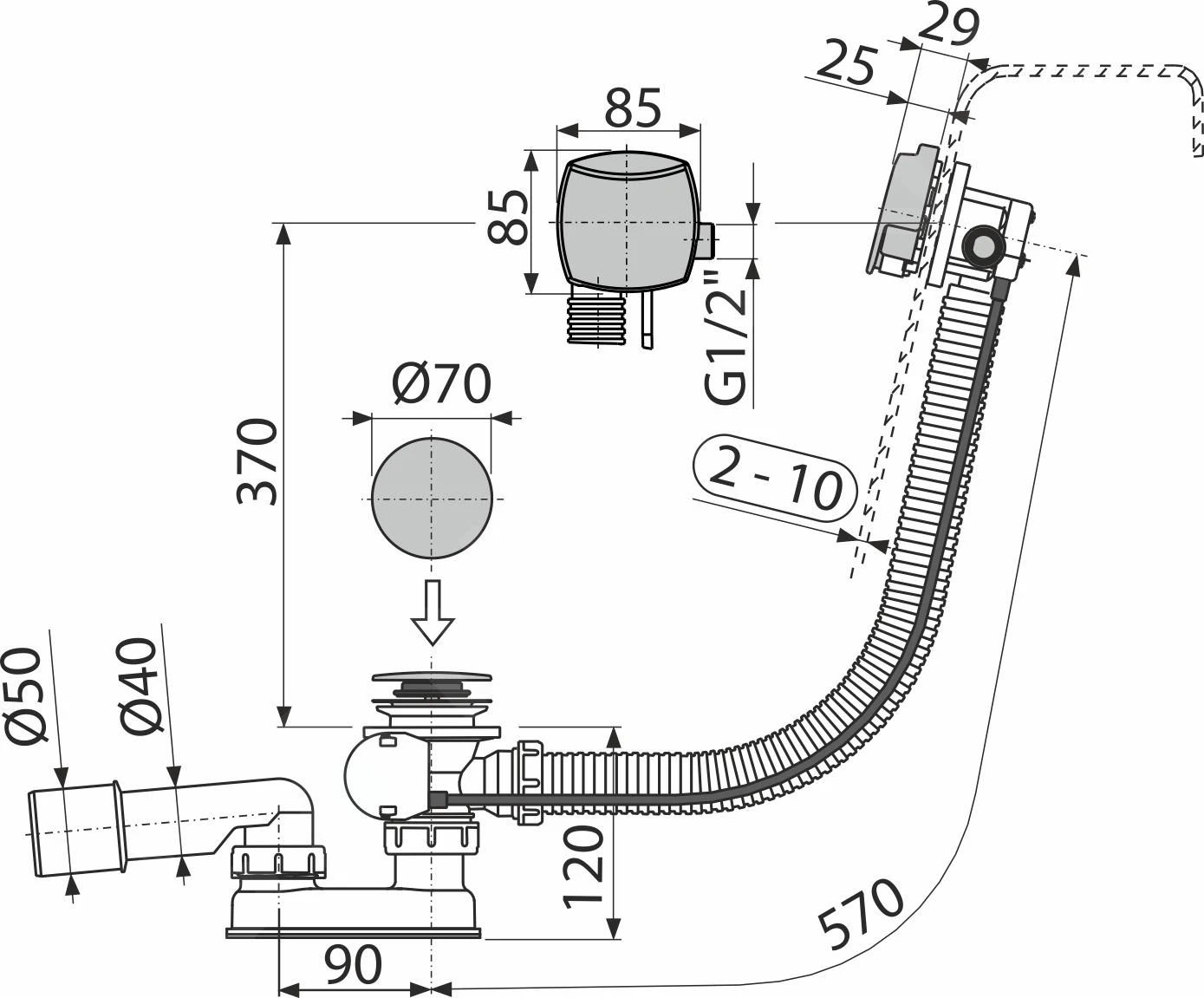 - lengte van de bad sifon 57 cm