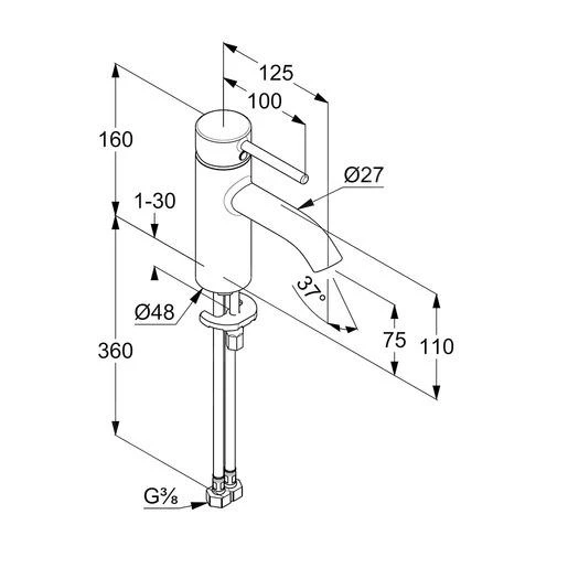 - kraanhoogte 160 mm
