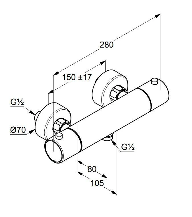 - aansluitmaat G 1/2, hartafstand 150 mm