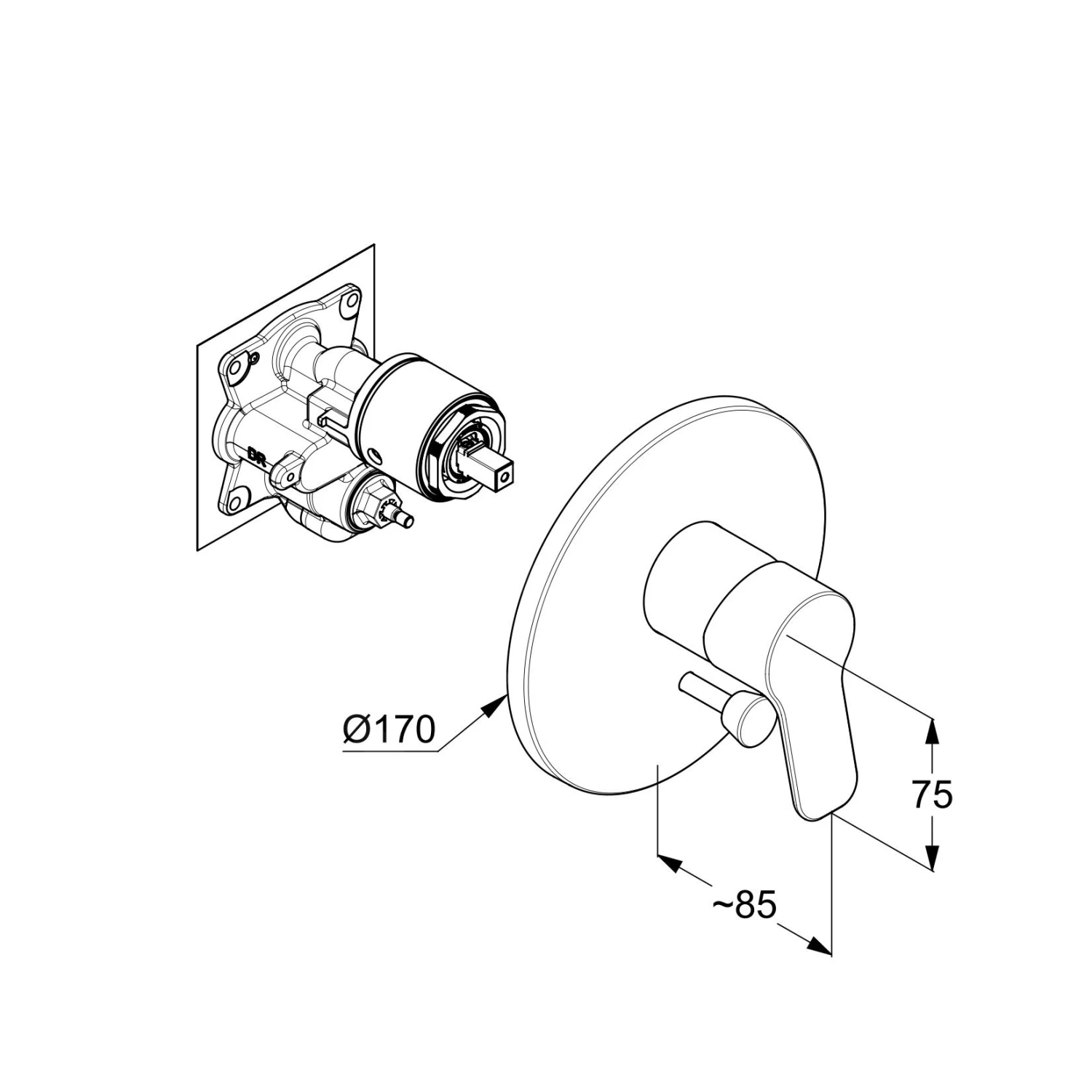 Eengreeps inbouw badkraan zonder inbouwdeel