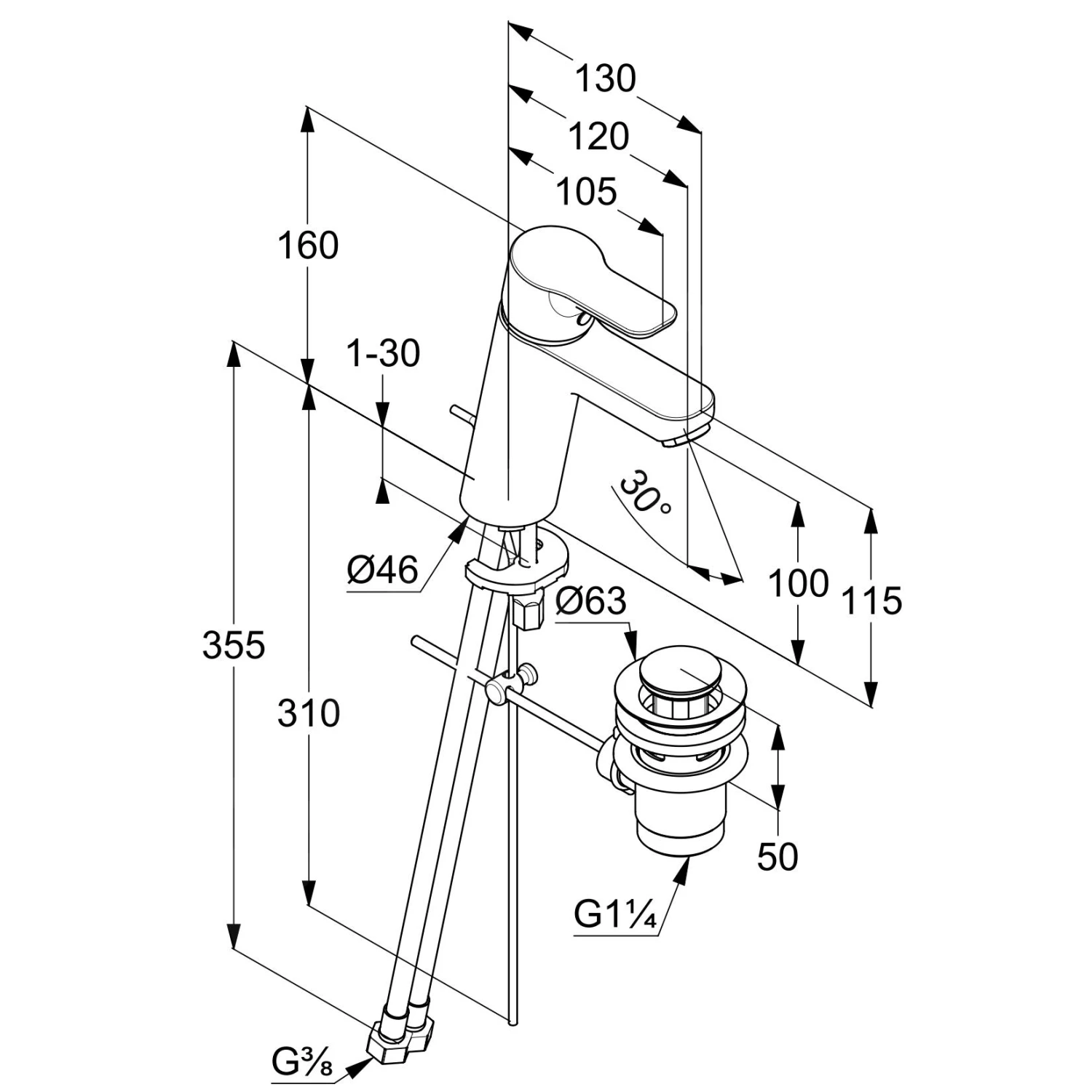 - flexibele aansluitingen G 3/8