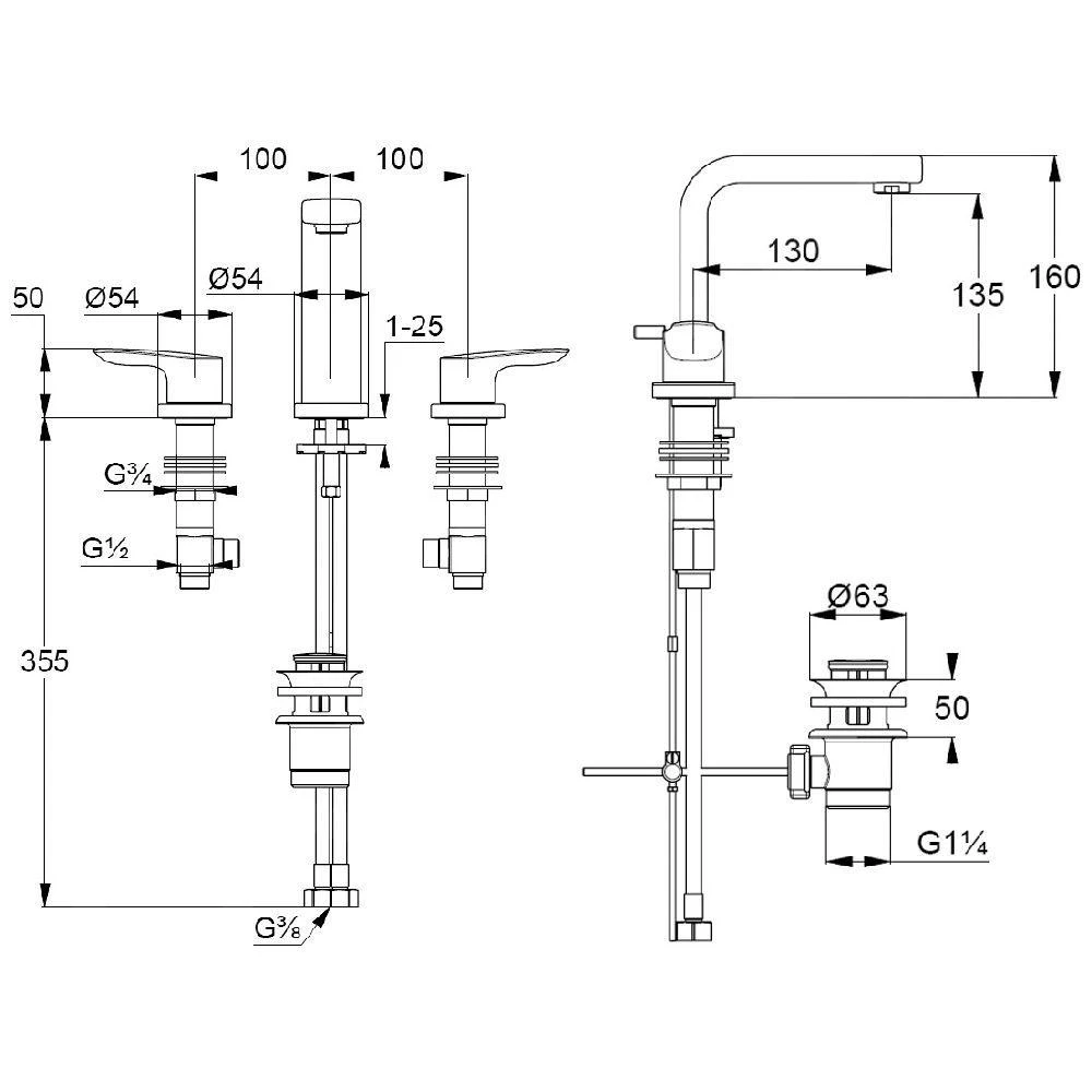3-gats wastafelkraan met waste