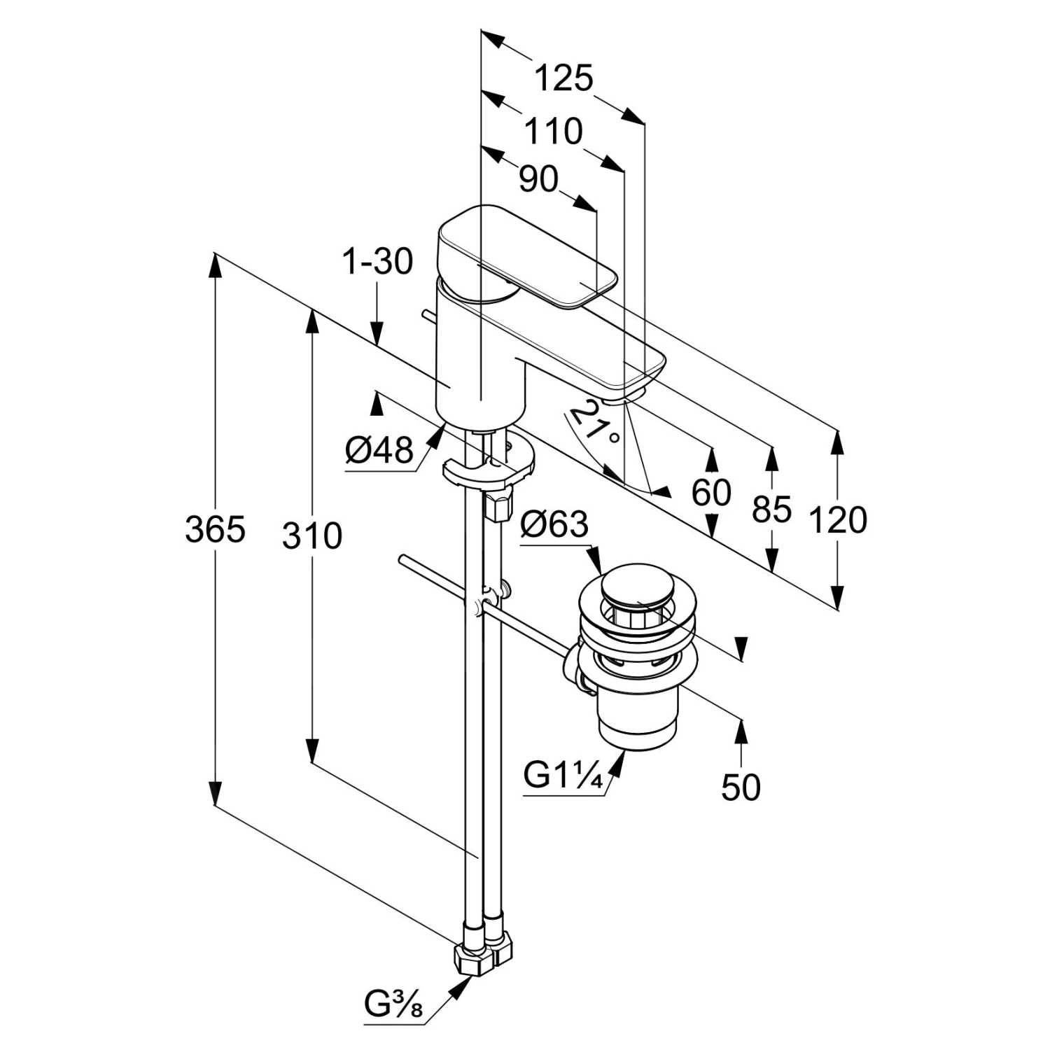 - keramische cartouche met begrenzing van de maximale watertemperatuur