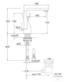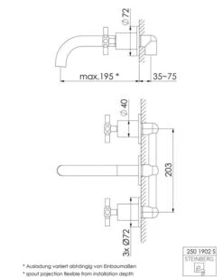 Steinberg 250 – Inbouw Wastafelkraan, 3-gats Installatie, Met Inbouwdeel, Mat Zwart 250 1902 S