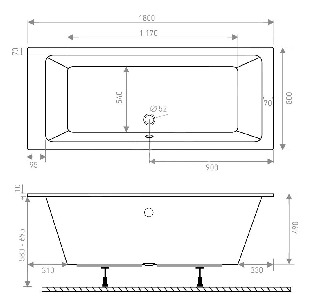 - afvoer- en overloopgarnituur niet inbegrepen, en moet apart worden aangeschaft
