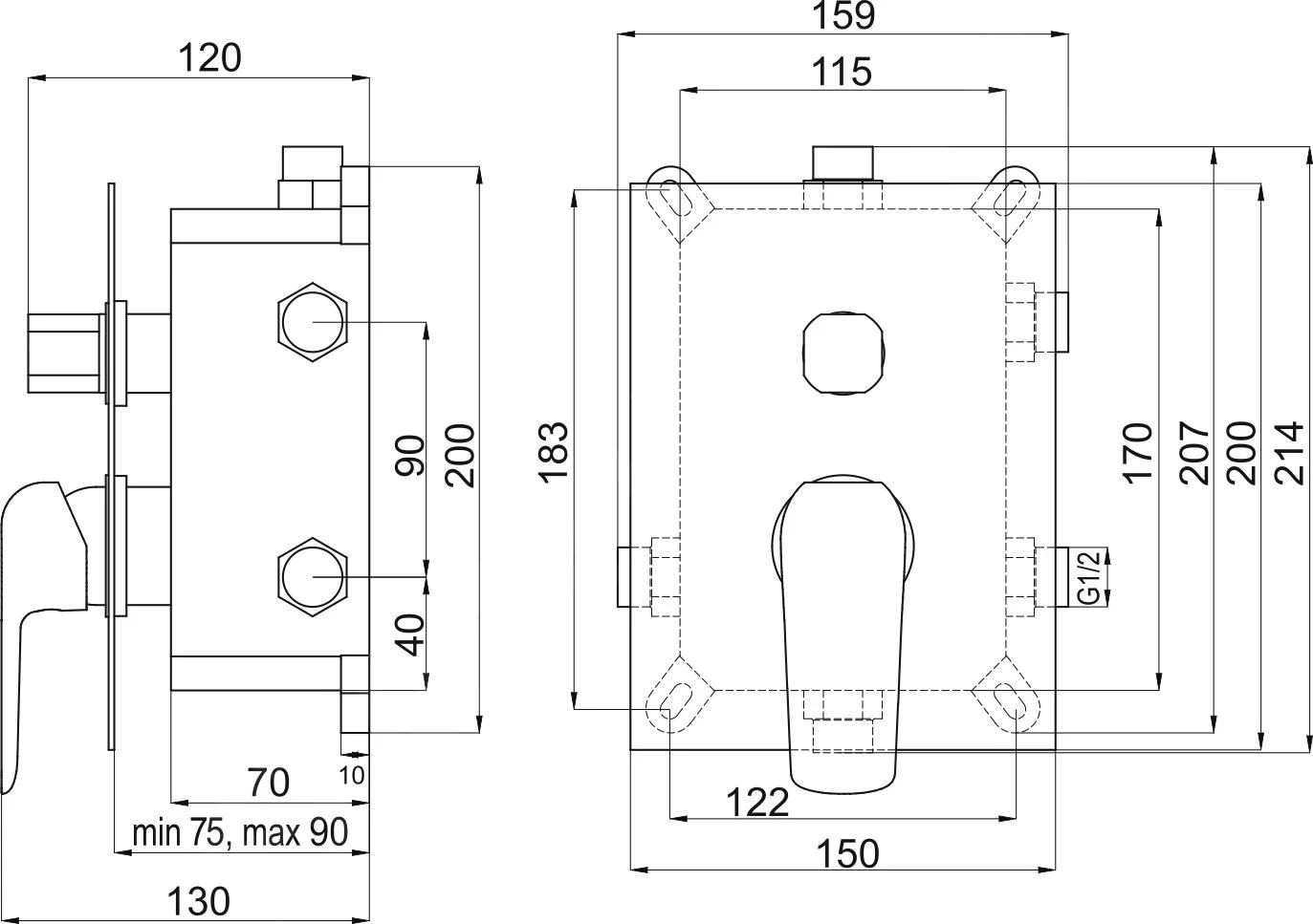 - diepte 130 mm