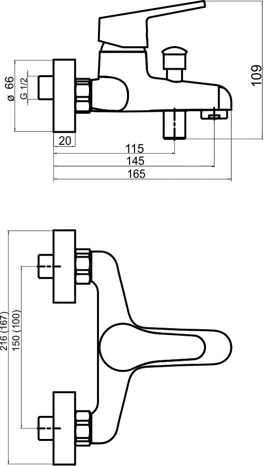 - hartafstand kraan: 100 mm