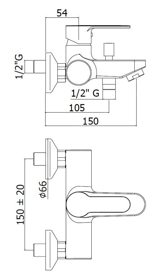 Wandgemonteerde badkraan inclusief douchekop, houder en slang
