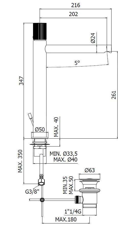 Hoge wastafelkraan, met afvoergarnituur