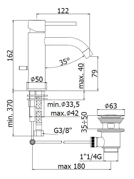- kraanhoogte 162 mm