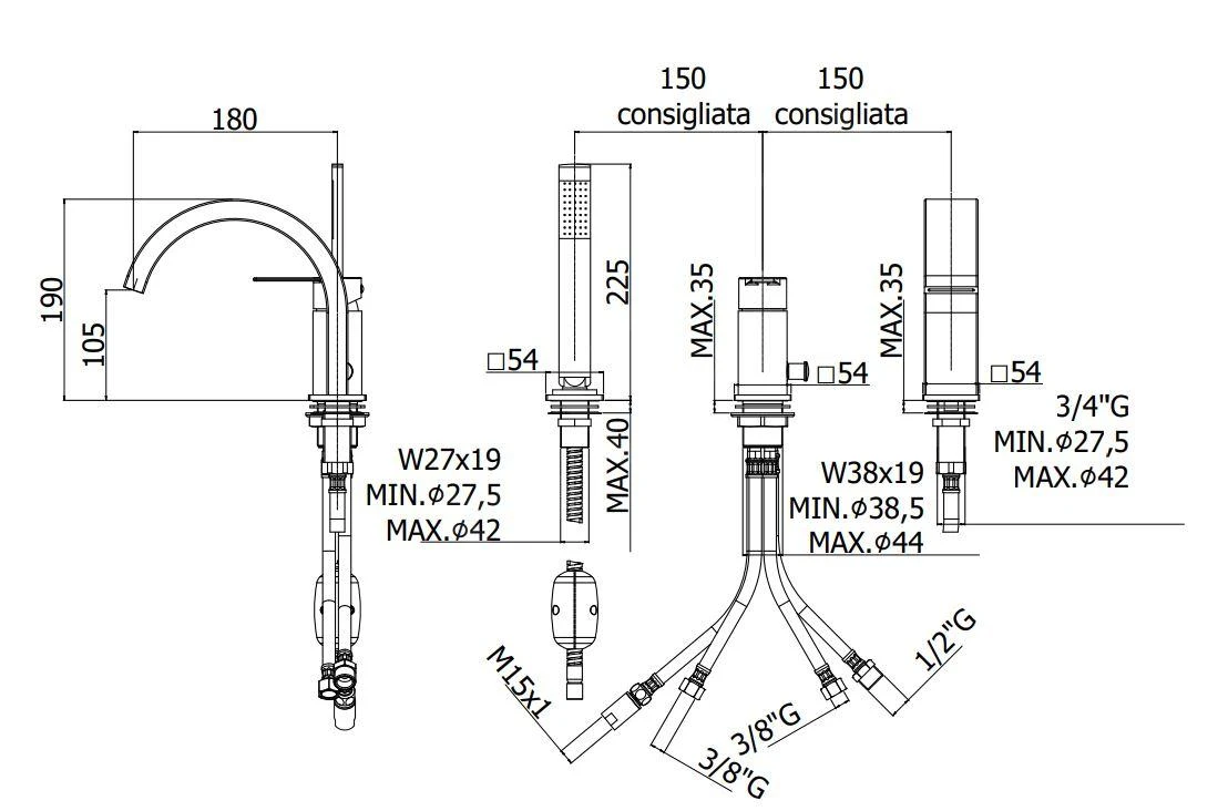 Badkraan met 3-gats installatie