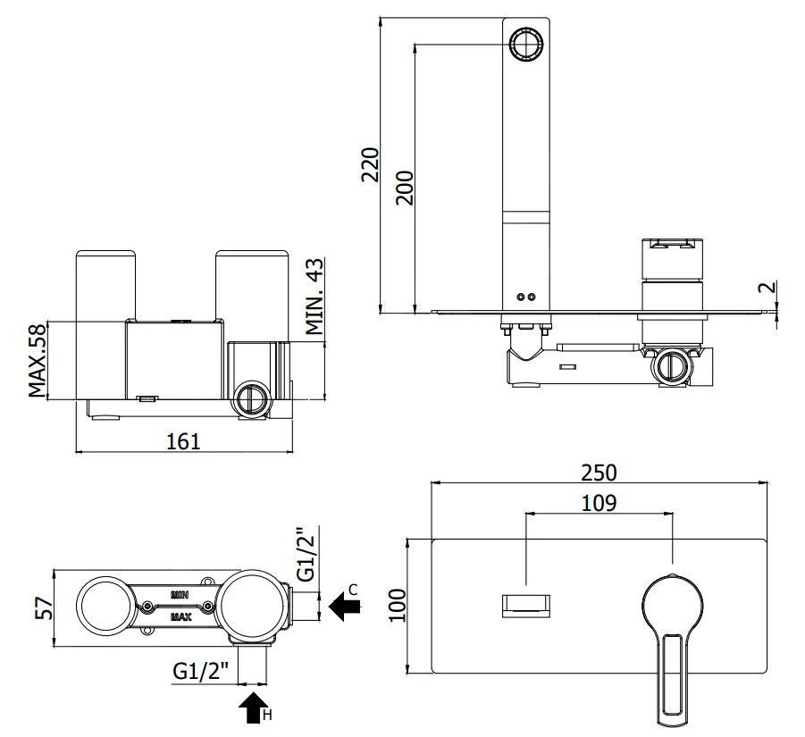 Inbouw wastafelkraan