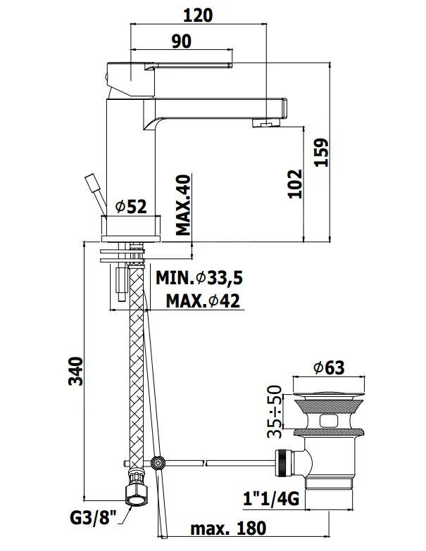 - met afsluitbare waste 1 1/4″, afdekking Ø 63 mm