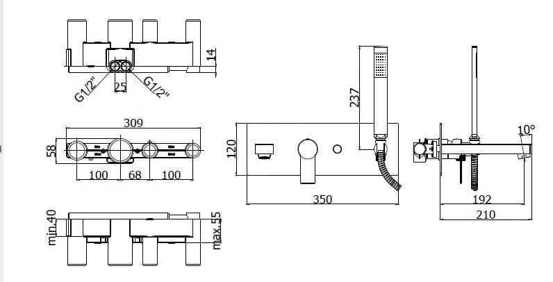 Eengreeps inbouw badkraan met inbouwdeel, incl. doucheset