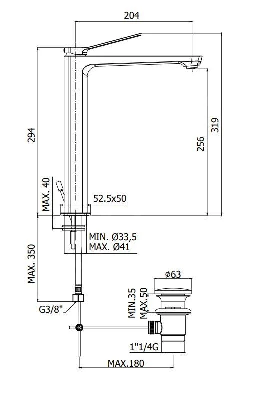 - kraanhoogte 294 mm