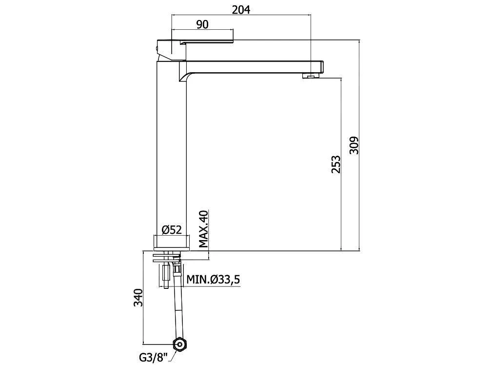 - lengte uitloop 204 mm, comfortzone 253 mm