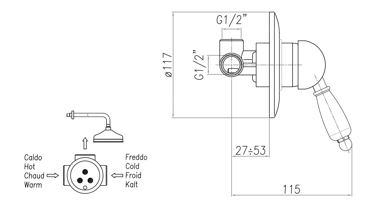 - diameter rozet: 117 mm