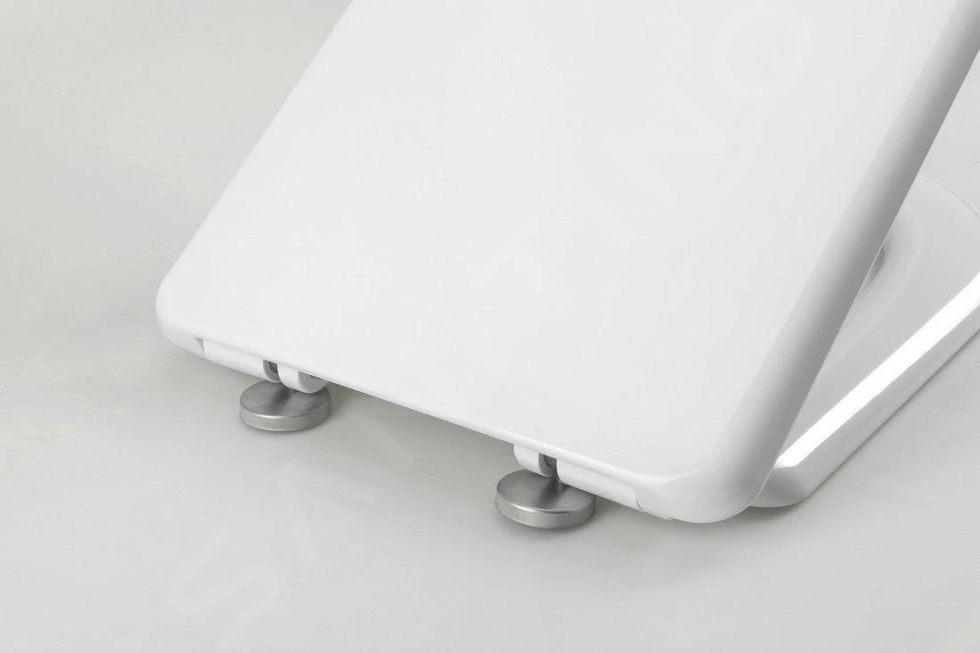 SoftClose systeem – langzame sluiting van zitting en deksel – zorgt voor veiligheid; dankzij het hydraulische systeem zakken het deksel en de zitting langzaam op de closetpot