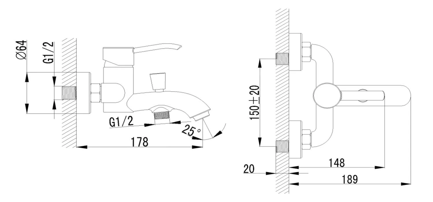 Eengreeps badkraan wandgemonteerd
