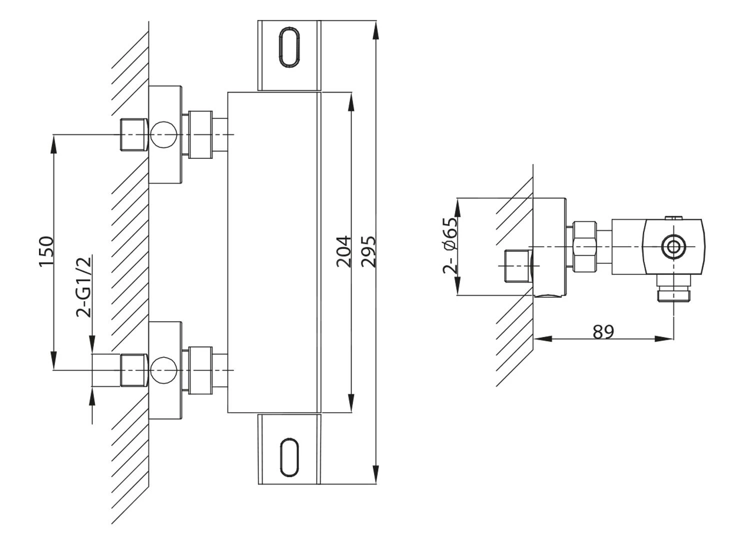 Thermostatische douchekraan, wandgemonteerd