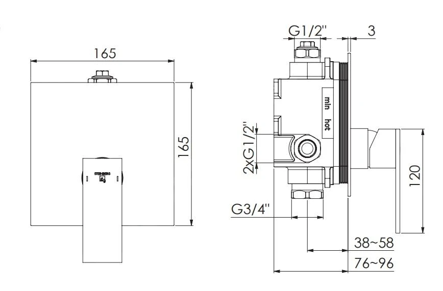 - vierkante wandrozet 165 x 165 mm