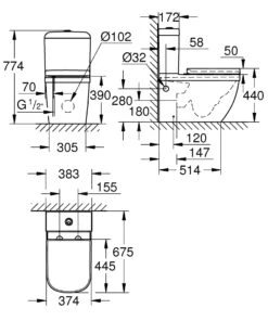 Grohe Bau Ceramic – Spoelreservoir, 343×153 Mm, Watertoevoer Aan De Zijkant, Alpine Wit 39494000