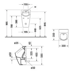 Duravit ME By Starck – Urinoir, Achterinlaat, Rimless, Met WonderGliss, Alpine Wit 28093000001
