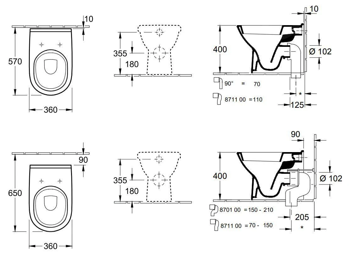 - horizontale afvoer, bij gebruik van Vario afvoerbocht aansluiting op verticale afvoer mogelijk