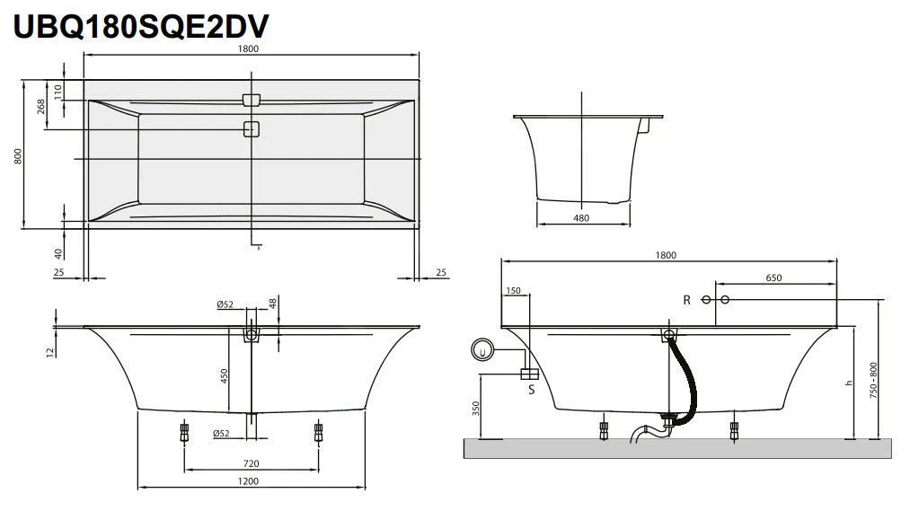 - stelpoten voor installatie van het bad meegeleverd, zelfklevend, instelbaar 130-180 mm