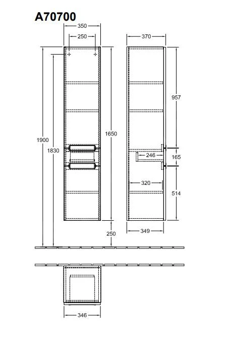 - afmetingen kast: 350 x 1650 x 370 mm (bxhxd)